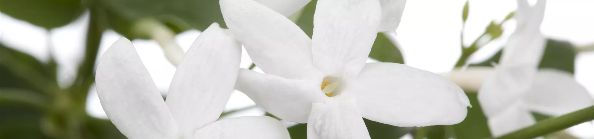 Die weißen, sternförmigen Blüten des Zimmer-Jasmin erscheinen in Rispen von Juni bis September. Diese sind stark duftend.