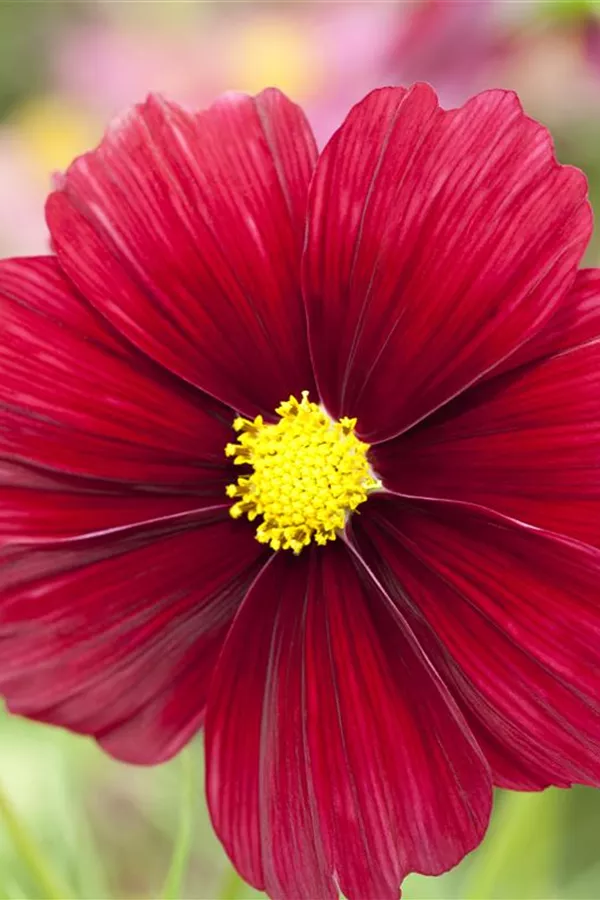 Das Fiederblättrige Schmuckkörbchen (Cosmos bipinnatus) ist eine beliebte Pflanze für den Balkon, die während der gesamten Saison unzählige weiße, rosafarbene, rote Blüten bildet. Die hellgrünen Blätter sind gefiedert. Ein sonniger Standort und ein durchlässiges Substrat werden bevorzugt.