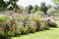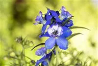 Ganz das Gegenteil von diesem Knalleffekt bewirkt die Farbe Blau. Ihre Kühle erzeugt Weite und schenkt Ruhe. Tiefe Blautöne vermitteln Vertrauen und signalisieren Verlässlichkeit. Große Flächen können auch Sehnsüchte wecken und einen Hauch von Mystik mit sich bringen, zum Beispiel wenn der Blaustern sich weitläufig durch den Steppengarten ausbreitet. Schwertlilien und Herbstastern sind mit herrlichen blauen Blüten vertreten und bieten viele Möglichkeiten für Beete und Rabatten. Wunderbare ruhige Inseln dazwischen entstehen mit dem Blauschwingel. Eine Kombination mit Weiß erfrischt und entspannt zugleich, zum Beispiel in der ganz einfachen Zusammenstellung von blauem und weißem Rittersporn. Ein Zusammenspiel mit der komplementären Farbe Gelb bringt spannenden Kontrast ins botanische Geschehen. Mädchenauge und Sonnenhut bieten sich hier an.