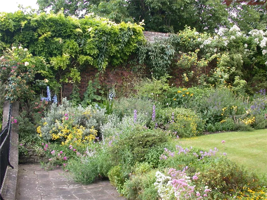 Blumenbeete in Blau und Violett