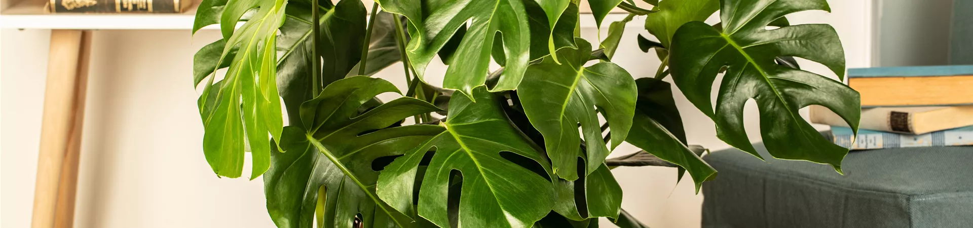 Unangefochten auf Platz 1 der besten Pflanzen fürs Homeoffice ist das Fensterblatt, auch als Spathiphyllum bekannt. Das Fensterblatt ist eine besonders pflegeleichte Zimmerpflanze und kommt auch mit dunklen Ecken im Haus zurecht. Als perfekte Pflanze fürs Homeoffice reinigt sie die Raumluft und filtert Schadstoffe hinaus. Vor allem Benzol, das durch Drucker entsteht und die sind ja vor allem im heimischen Büro zu finden. Außerdem reichert die Pflanze die Luft deutlich mit Sauerstoff an und hat ganz nebenbei auch noch hübsche weiße Blüten zu bieten. Ebenfalls für schattig Stellen geeignet ist unter den Pflanzen fürs Homeoffice der Gummibaum. An einem dunklen Fleck braucht er zwar weniger Wasser, punktet aber auch mit seinen Eigenschaften. Die Pflanze reinigt ebenfalls die Raumluft und reichert sie mit Sauerstoff an. Und eine absolute Trendpflanze darf unter den Top 3 natürlich nicht fehlen. Die Monstera ist eine der beliebtesten Pflanzen fürs Homeoffice. Trotz ihrer exotischen Herkunft ist sie besonders anspruchslos und pflegeleicht und bedankt sich mit einzigartigen Blättern, die uns guttun. Die Monstera gehört ebenfalls zu den luftreinigenden Pflanzen und steigert die Qualität der Raumluft enorm. Sie ist gut für das Raumklima und sind ein guter Sauerstoffspender. Außerdem sorgen die großen Blätter für Ruhe und wirken harmonisch.